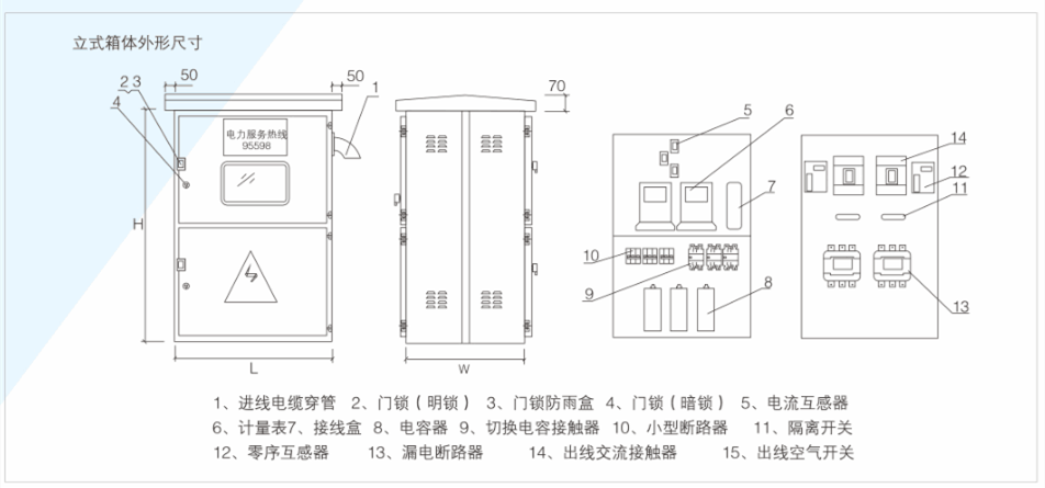 JP系列户外综合配电箱,是集计量、出线、无功补偿等多功能于一体达到户外综合配电装置,具有短路、过载、过电压、漏电保护等功能,体积小、外型美观、经济实用,安装于户外柱上变压器的电杆上,是城乡电网改造的新一代理想配电产品。