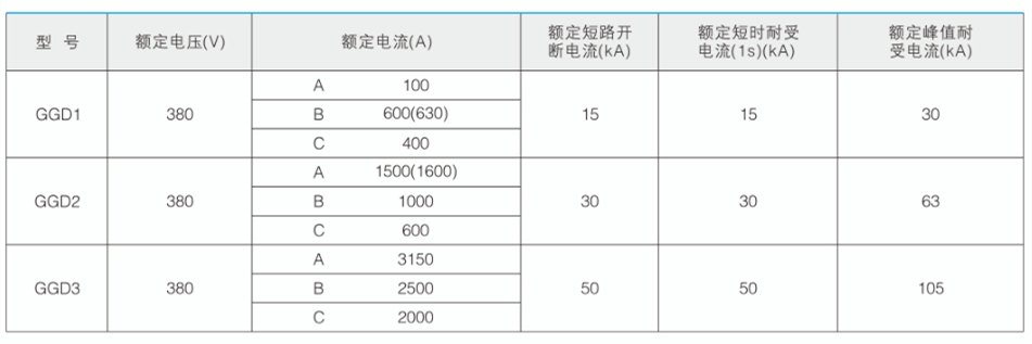 GGD型交流低压配电柜适用于发电厂、变电站、厂矿企业等电力用户的交流50Hz,额定工作电压380V额定工作电流至3150A的配电系统,作为动力、照明及配电设备的电能转换、分配与控制之用。