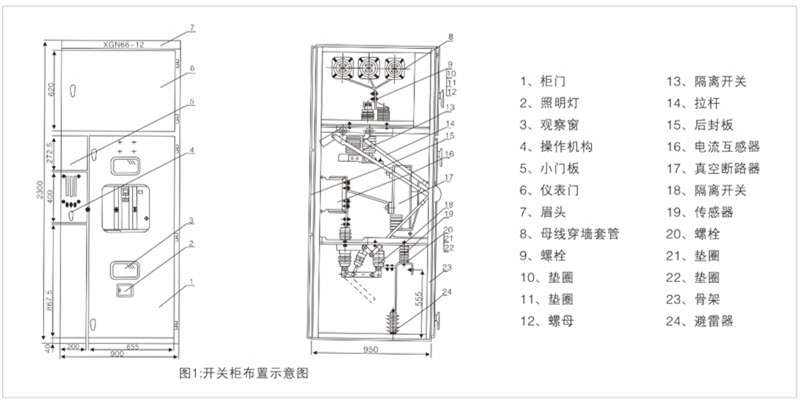 XGN66-12型固定式封闭开关设备(以下简称开关柜)是我公司新一代高压电器成套产品,符合..标准GB3906《3-35KV交流金属封闭开关设备》电气部DLT404《户内交流高压开关柜订货技术条件》的要求,也满足..标准IEC298《1kV以上52kV以下交流金属封闭开关设备和控制设备的要求》。