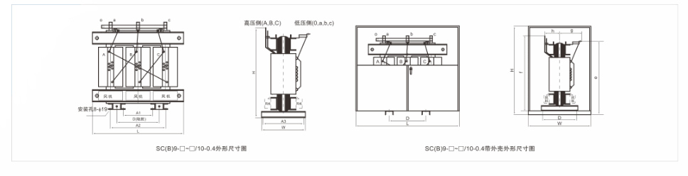 额定高压:10(11, 10.5,6.6, 6.3, 6)KV额定低压: 0.4KV